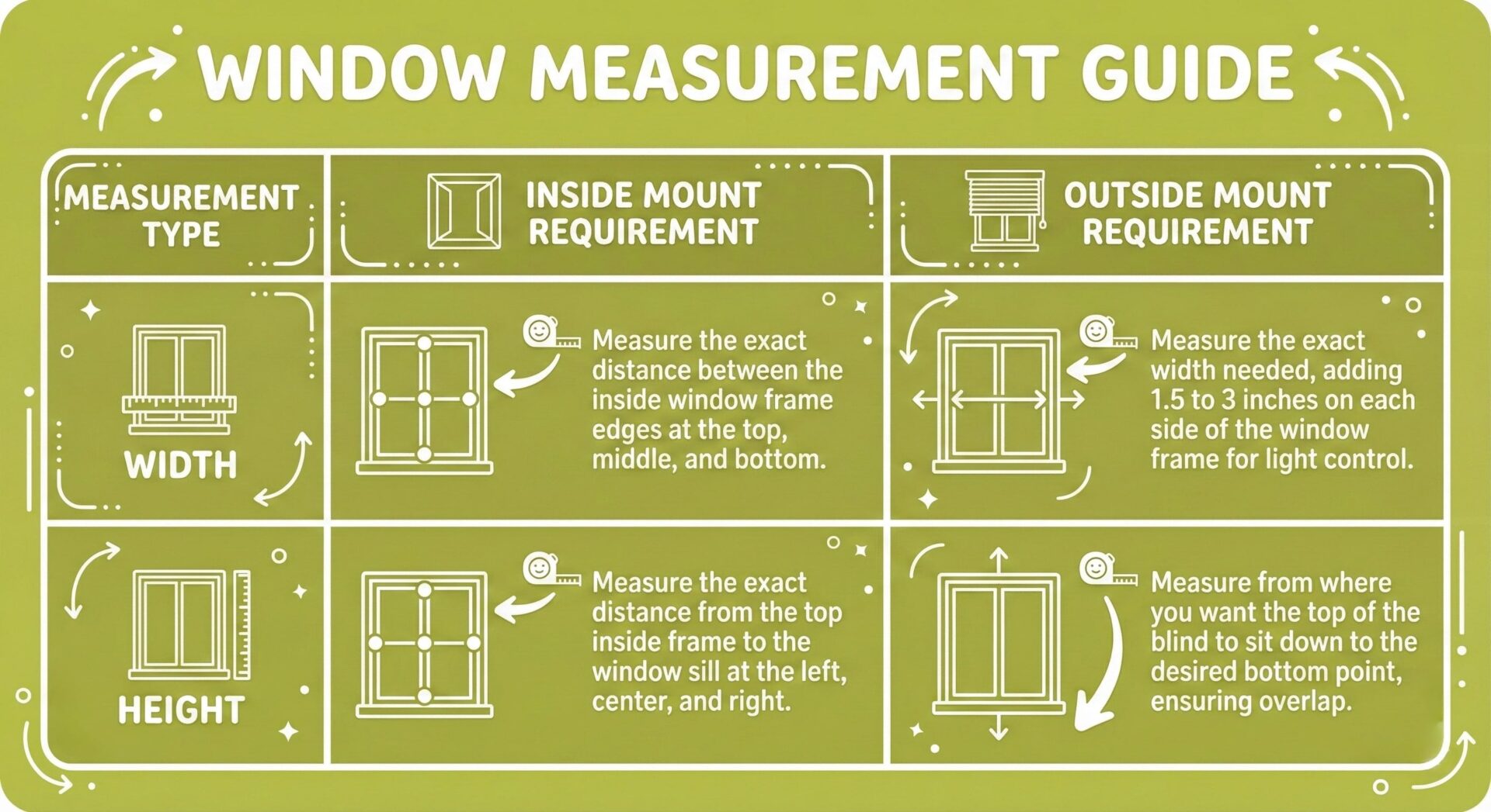 | Measurement Type | Inside Mount Requirement | Outside Mount Requirement |
